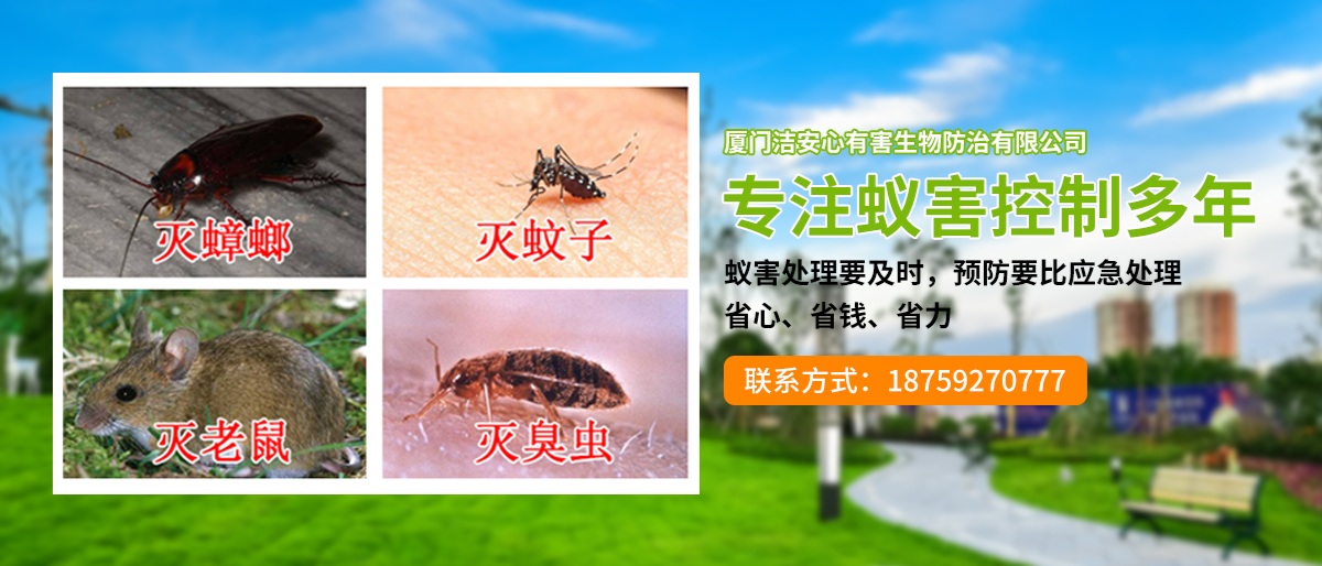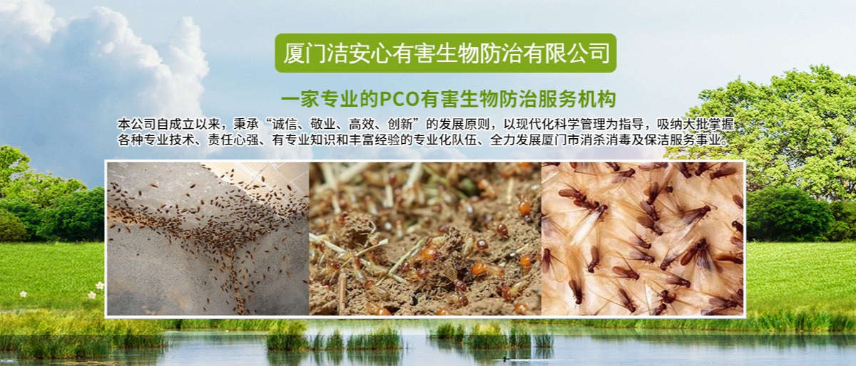 廈門潔安心有害生物防治有限公司成立于2020年是一家專業的PCO有害生物防治服務機構,是經廈門市工商局注冊登記、廈門市白蟻防治管理所、PCO協會批準的城市害蟲綜合治理公司,專業殺臭蟲、殺白蟻、殺蟲、滅老鼠的公司,是集廈門白蟻防治、廈門殺蟲、滅鼠滅四害、廈門殺臭蟲、廈門殺白蟻、廈門滅蟑螂治理銷售于一體的大型專業廈門有害生物環保服務公司。主要從事新建、擴建、改建、裝飾裝修單位建筑物的白蟻防治和白蟻預防工程,同時從事工廠、酒店、企事業單位、住宅小區和家庭的”四害”滅治和白蟻防治服務,長期向各類型客戶提供廈門白蟻防治、廈門殺蟲、滅四害,廈門殺臭蟲、廈門殺白蟻、廈門滅鼠等優質服務。